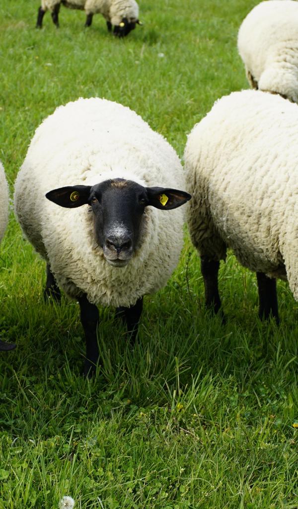 Wallpaper Fluffy gray cat is sitting in the green grass.