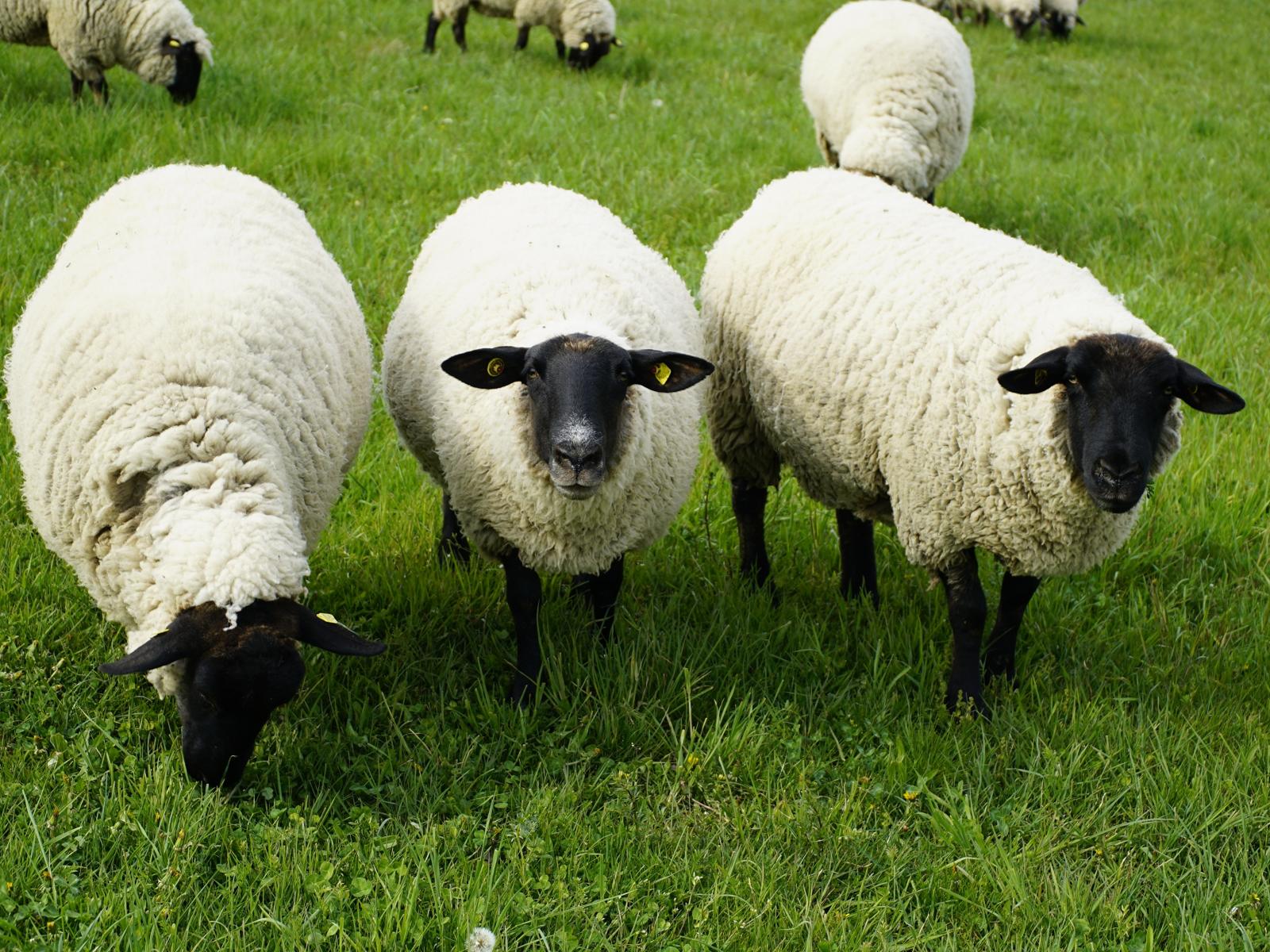 Wallpaper Big fluffy puppy nibbles a stick on green grass