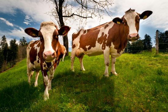 » Wallpaper Two domestic cows on a green field