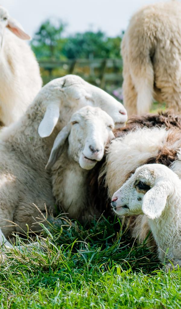 Wallpaper Domestic sheep lie on the green grass