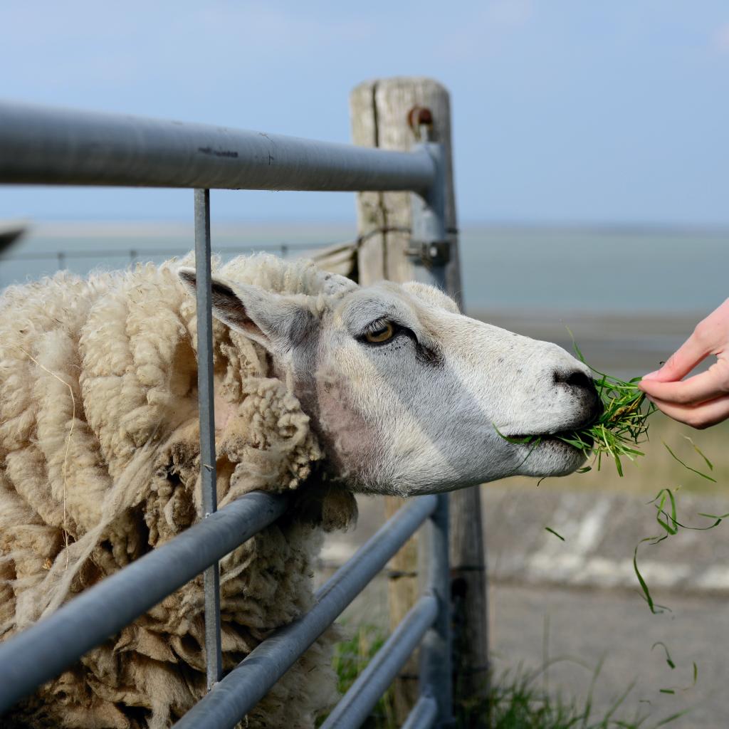 Wallpaper Big fluffy sheep eating grass on a farm