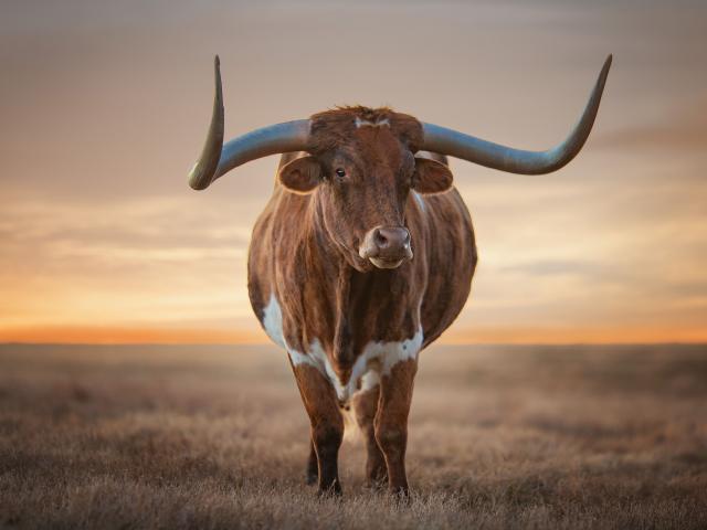 Wallpaper Bull with big horns on the background of a beautiful sky