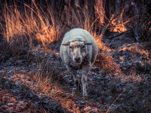 Wallpaper Sheep walks on frosty grass