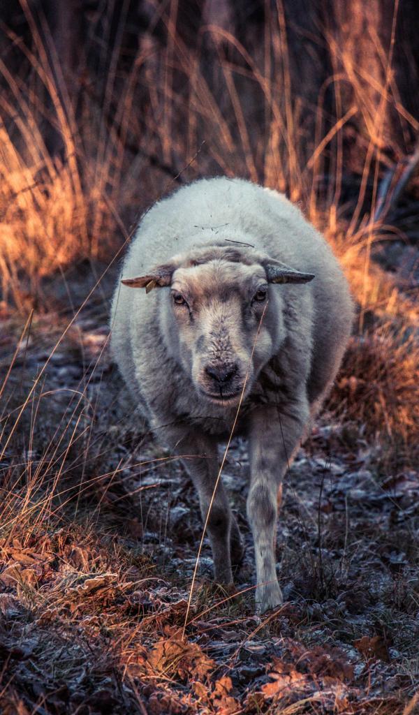 Wallpaper Sheep walks on frosty grass