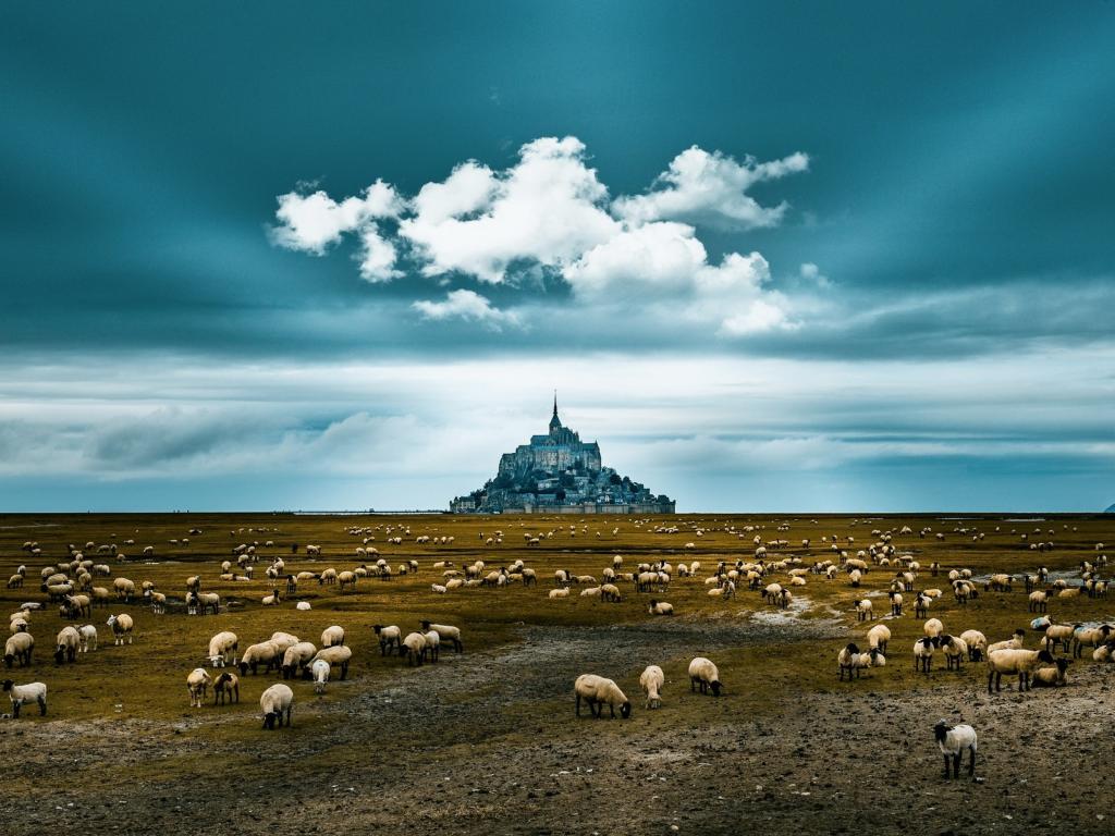 Wallpaper A flock of sheep grazes at the old monastery