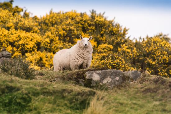 Wallpaper Big fluffy sheep stands on a stone