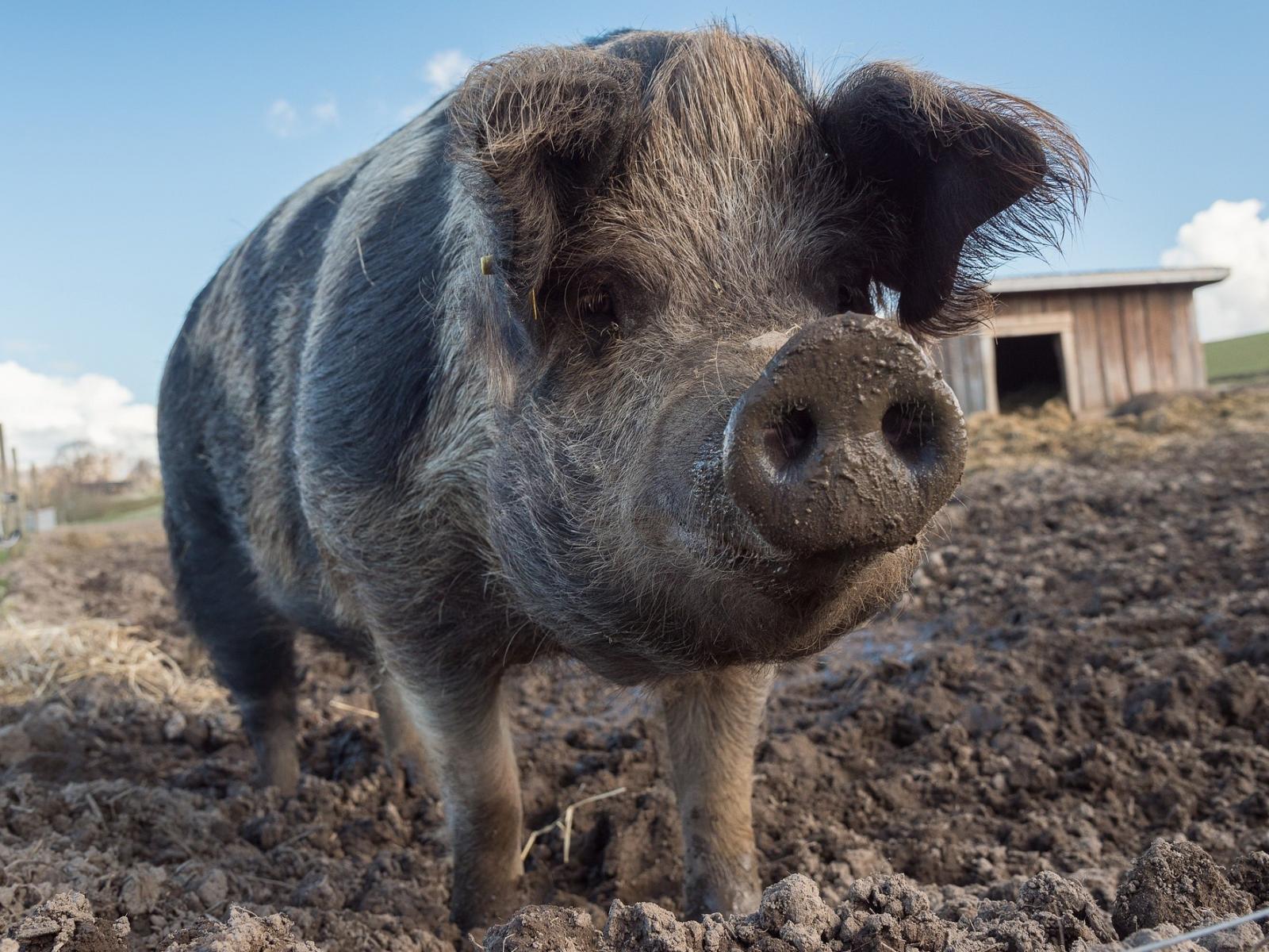 Wallpaper A beautiful dog with a smart snout is standing on the ground