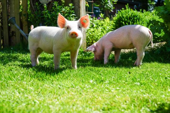 Wallpaper Two funny pink pigs on green grass