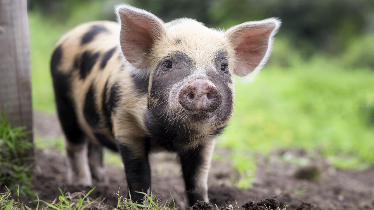 Wallpaper Funny pig with a dirty pyatakom