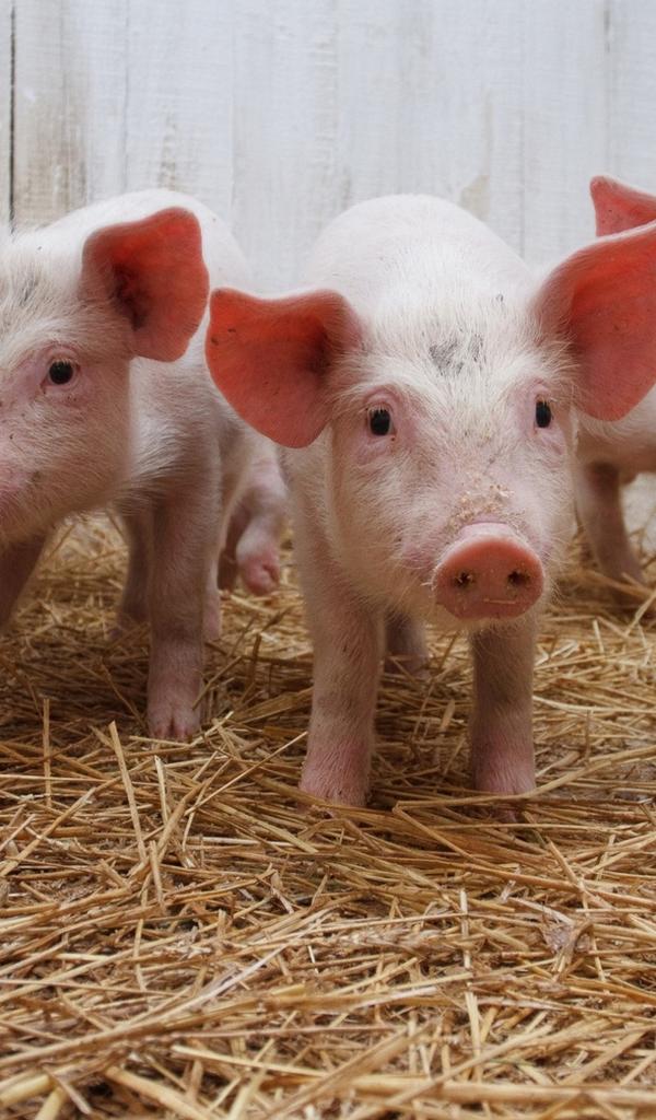 Wallpaper Two domestic pink pigs are walking on the green grass