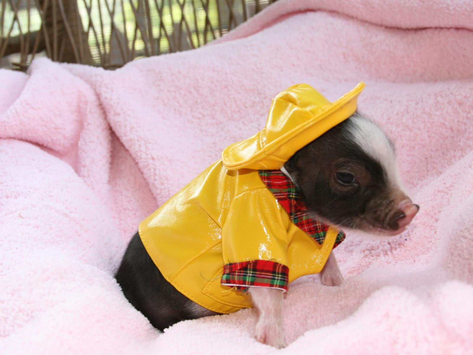 Wallpaper Little pig in a yellow suit, the symbol of the new year 2019