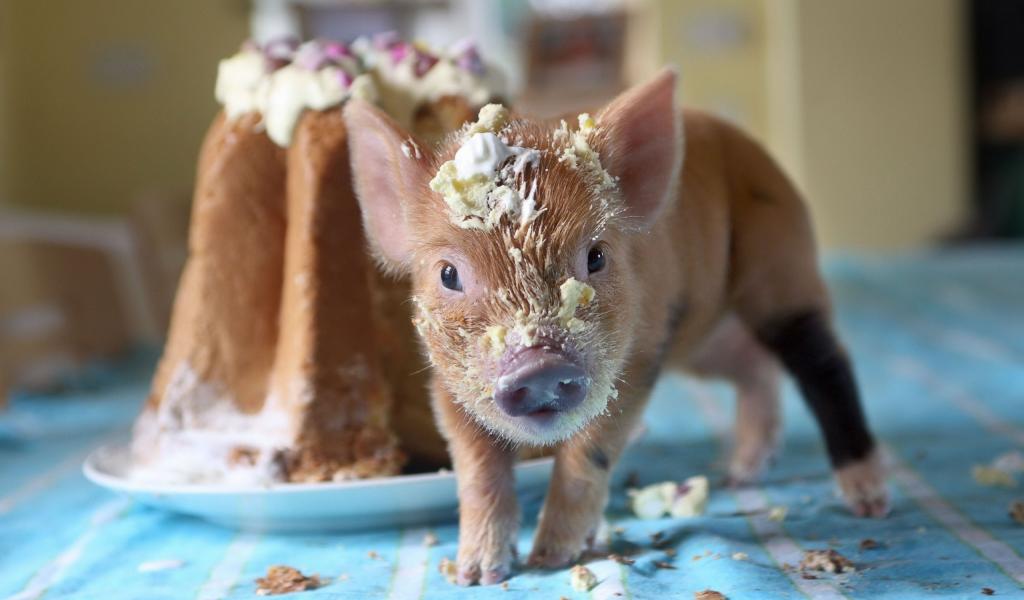 » Wallpaper Little piglet in cake cream