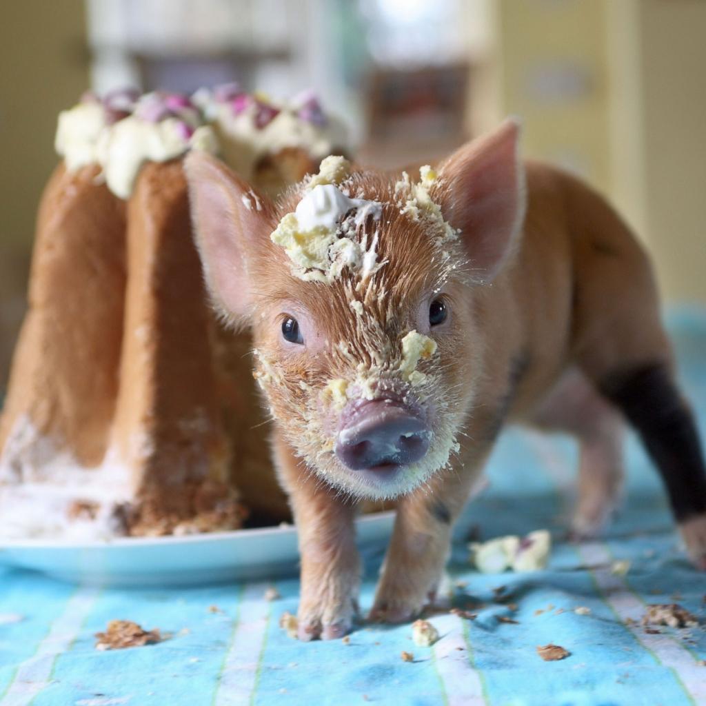 » Wallpaper Little piglet in cake cream