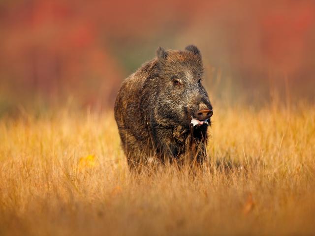 » Wallpaper Big hog goes on dry grass