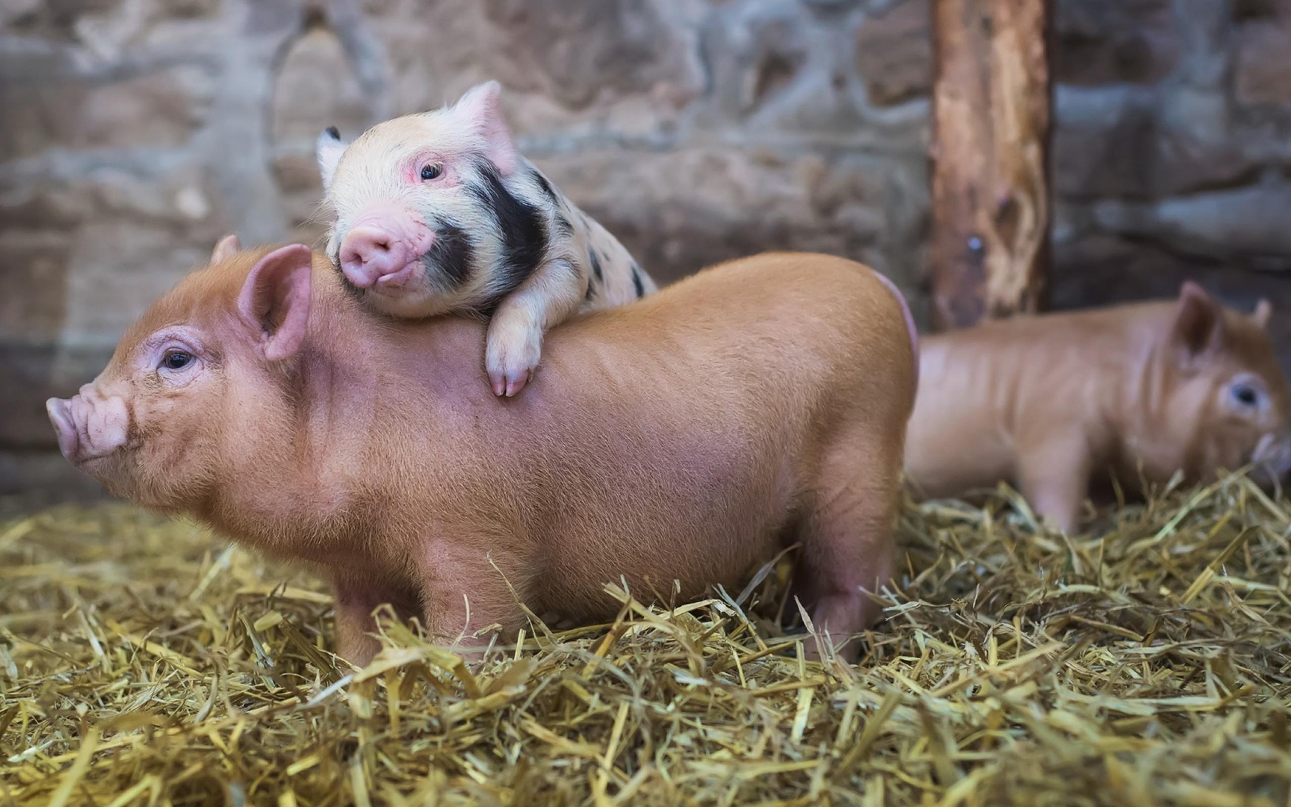 Wallpaper Cute pigs in the pigsty