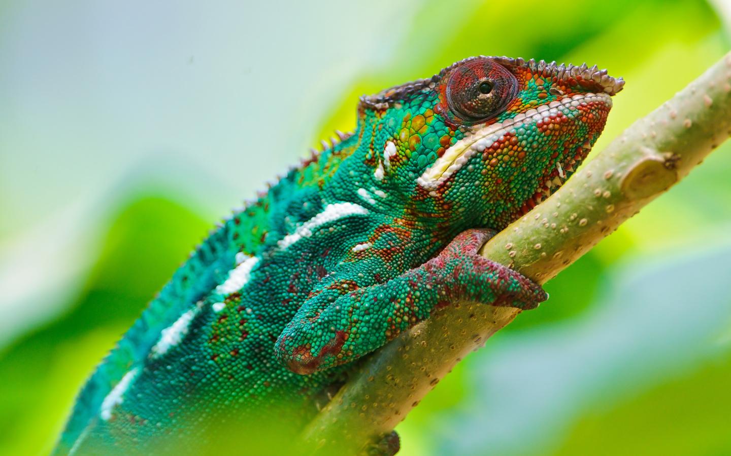 Wallpaper Multicolored chameleon on a branch