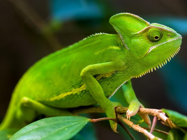 Wallpaper Green chameleon on a close-up branch