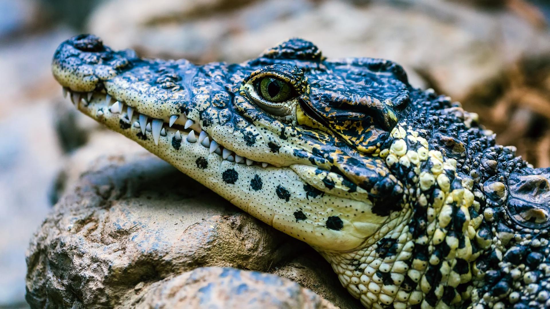Wallpaper Crocodile rest on the stone