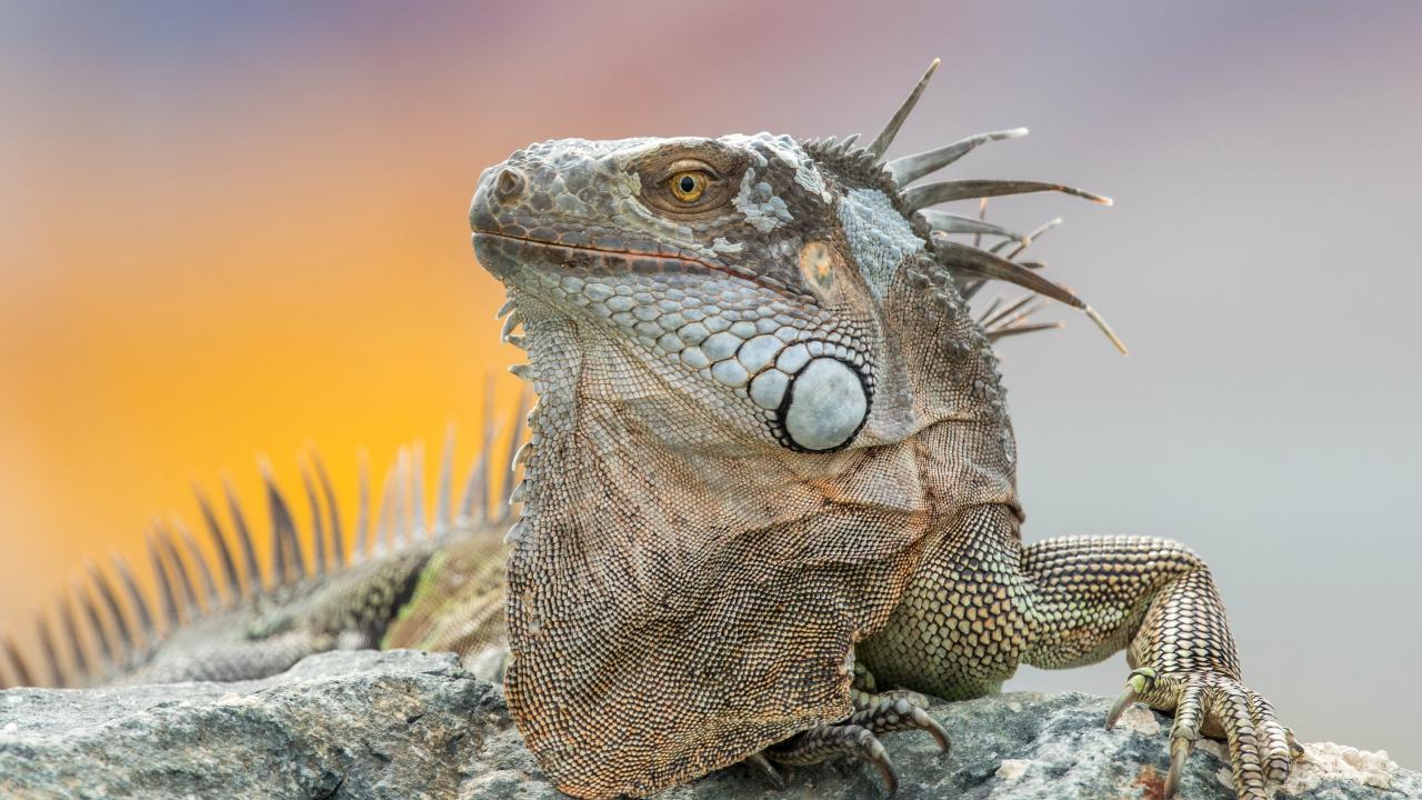 Wallpaper Gray iguana resting on the stone