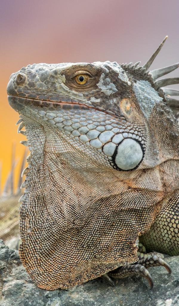 Wallpaper Gray iguana resting on the stone