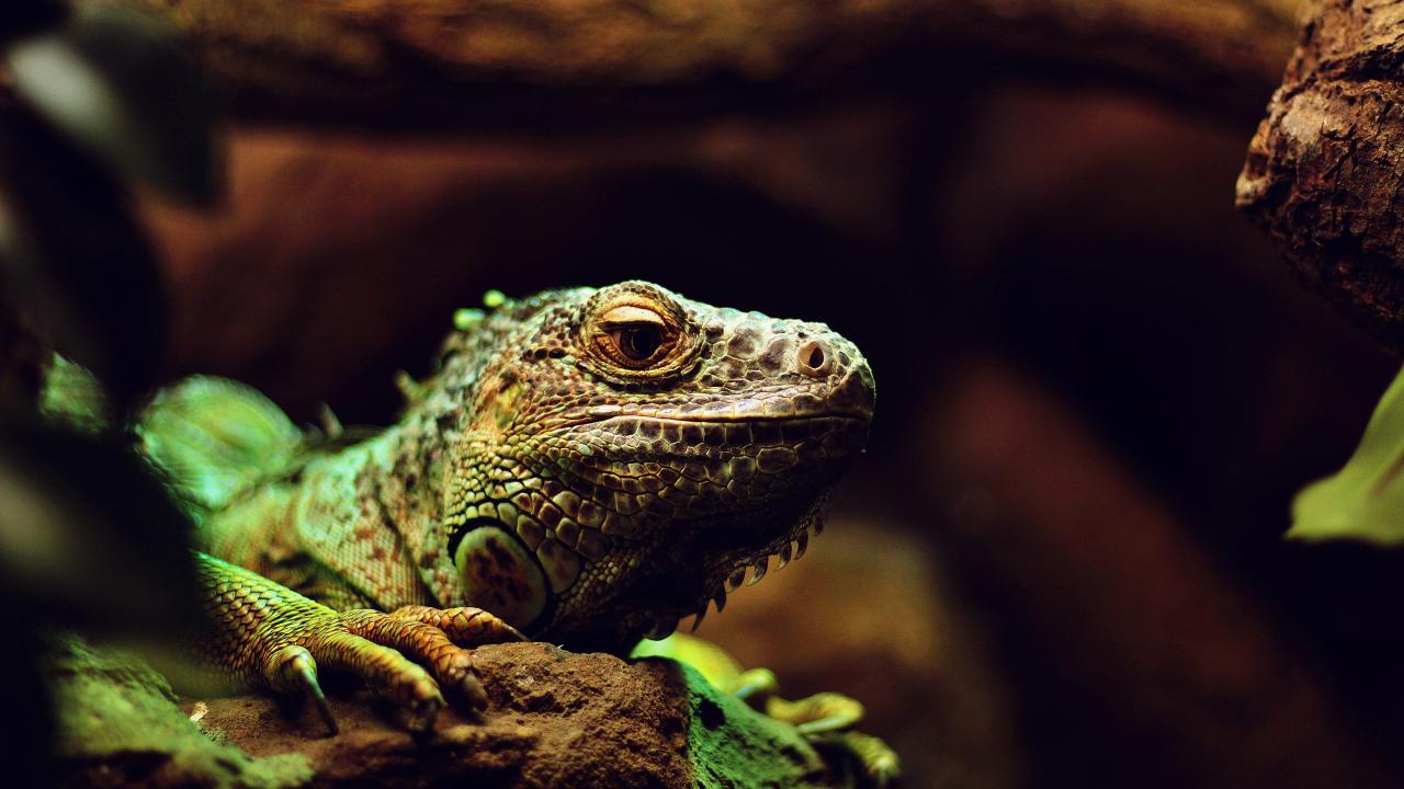 Wallpaper Large green iguana on stone
