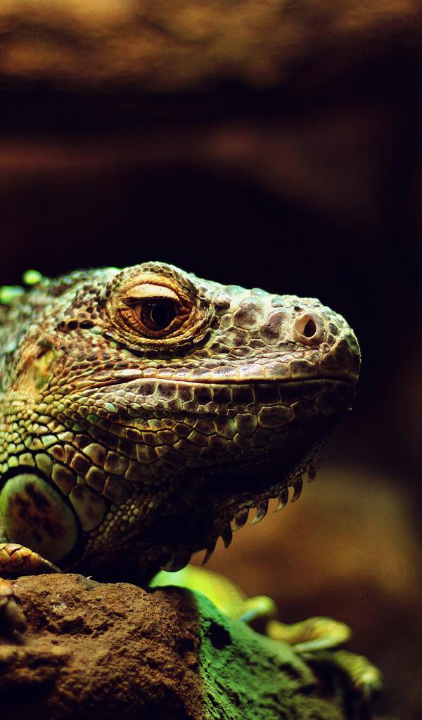 Wallpaper Large green iguana on stone