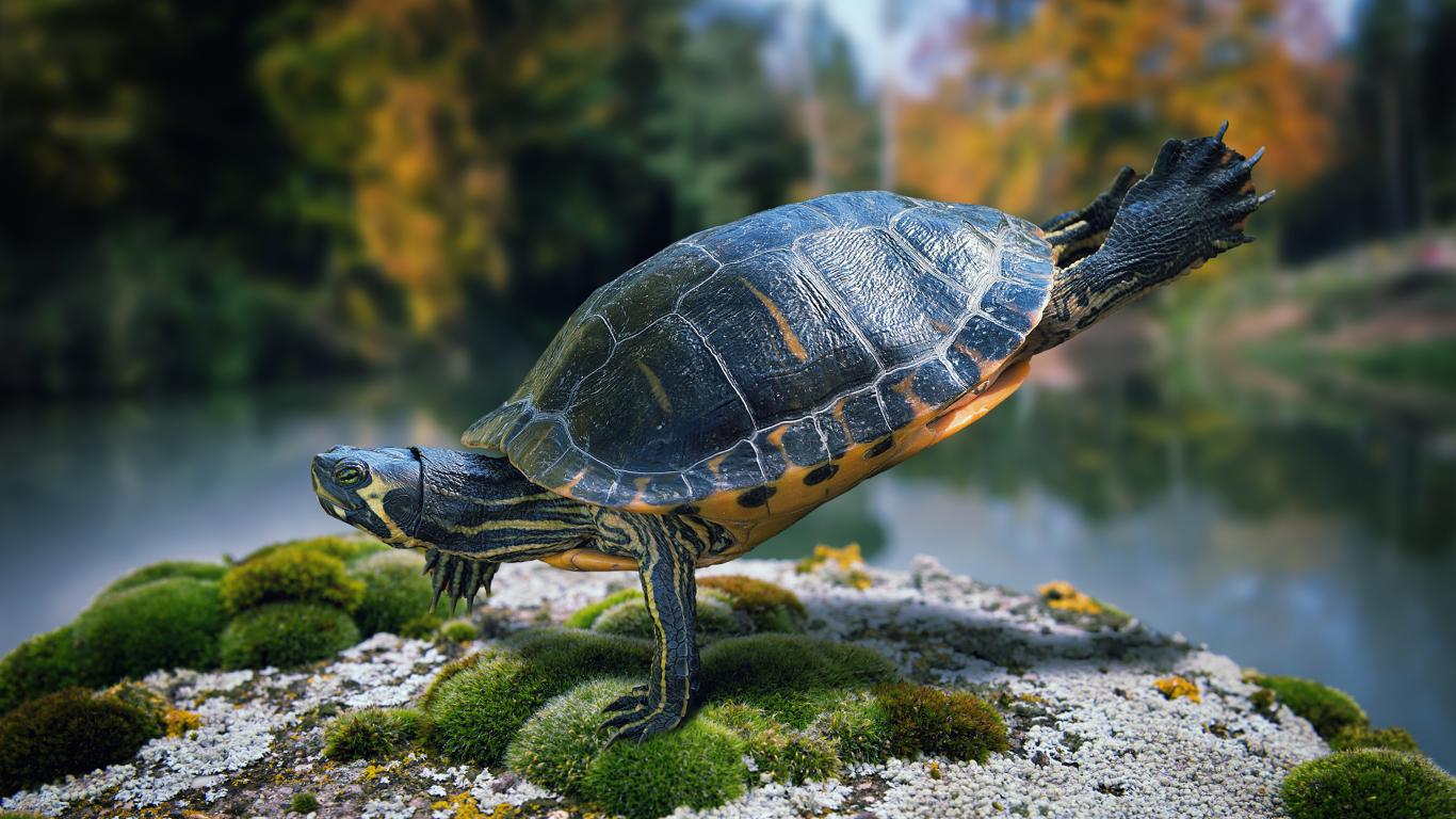 Wallpaper Красивая черепаха делает гимнастику на камне