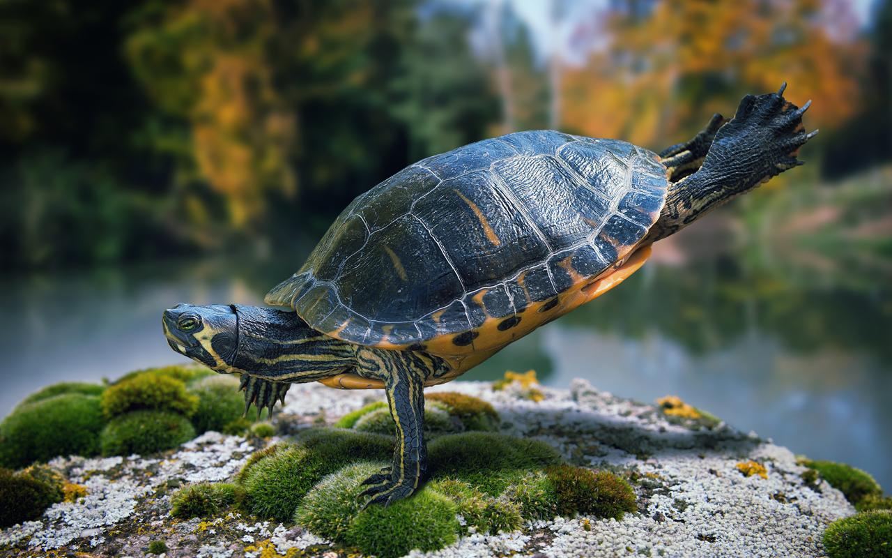 Wallpaper Красивая черепаха делает гимнастику на камне