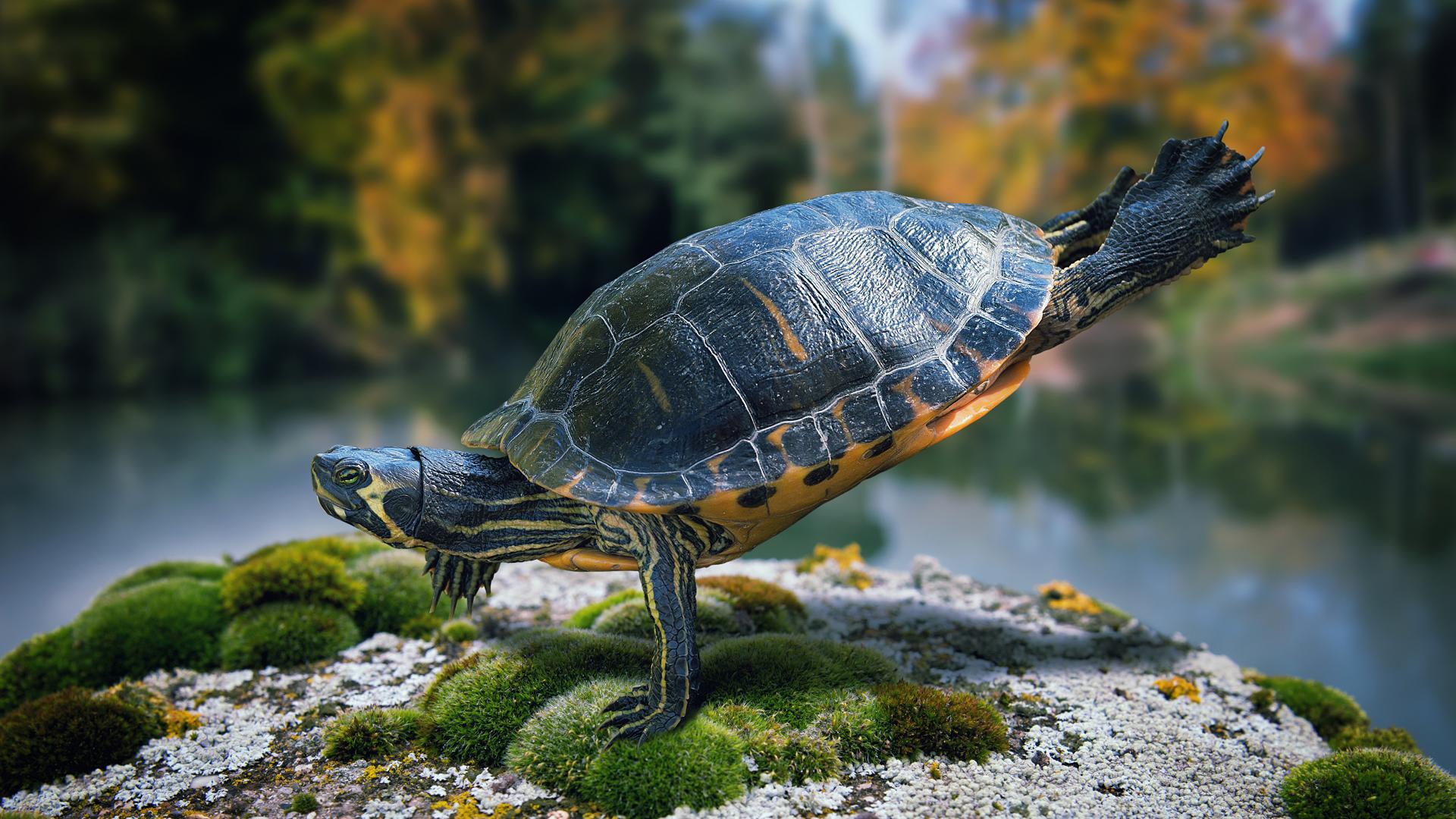 Wallpaper Красивая черепаха делает гимнастику на камне
