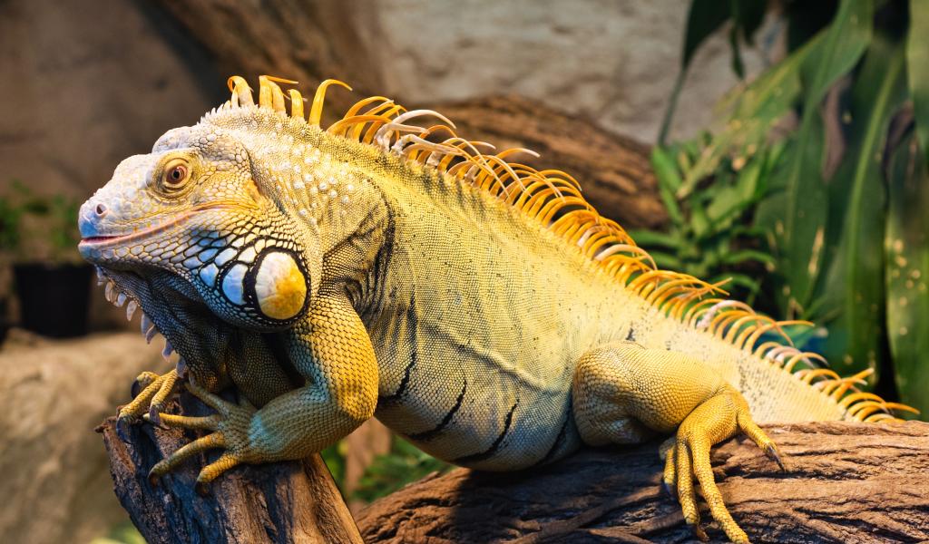 Wallpaper A large iguana is sitting on a tree