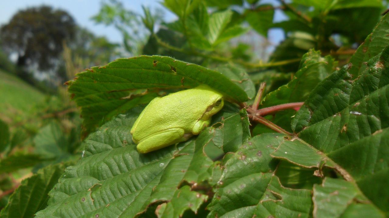 Wallpaper The green toad sits on a large leaf