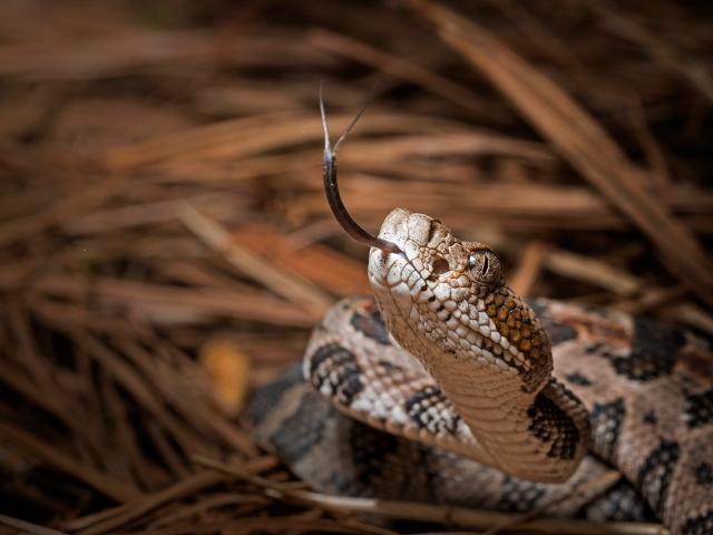 Wallpaper The green snake with its tongue sticking out wrapped around the tree branch