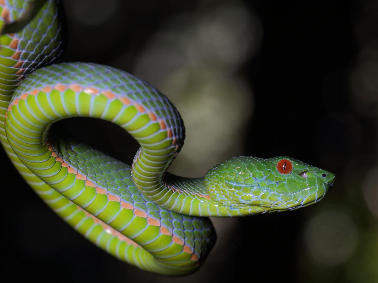 Wallpaper Green Viper with red eyes on a branch