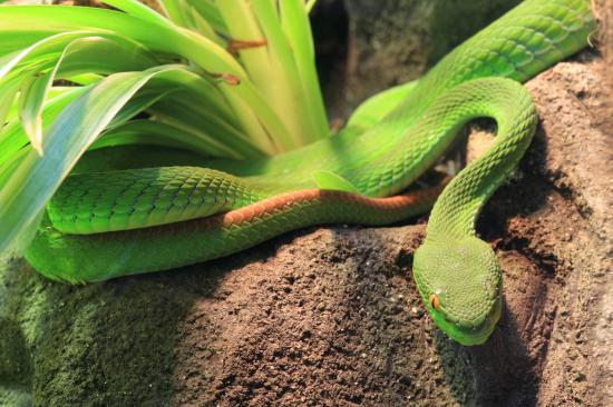 Wallpaper Green snake crawling on the ground at the plant