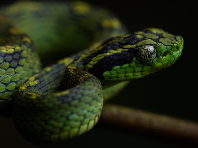 Wallpaper Green Viper with big eyes on a branch