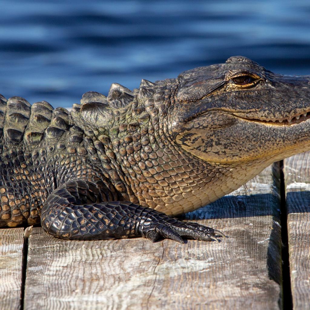 Wallpaper Alligator lies on a bridge near the water