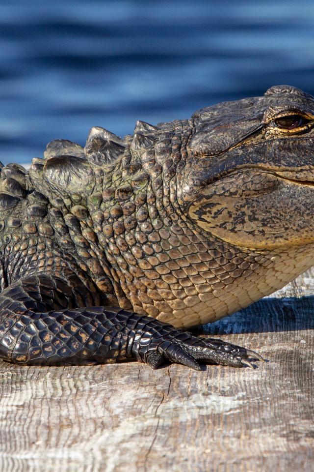 Wallpaper Alligator lies on a bridge near the water