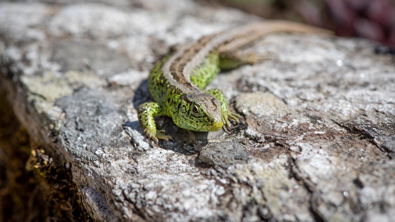 » Wallpaper Green lizard sits on a stone