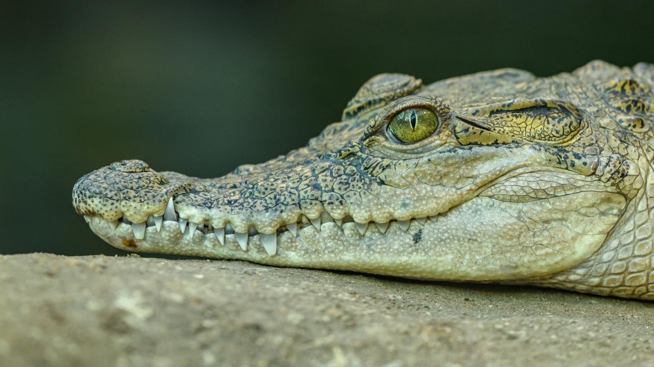 Wallpaper The head of a large alligator with sharp teeth
