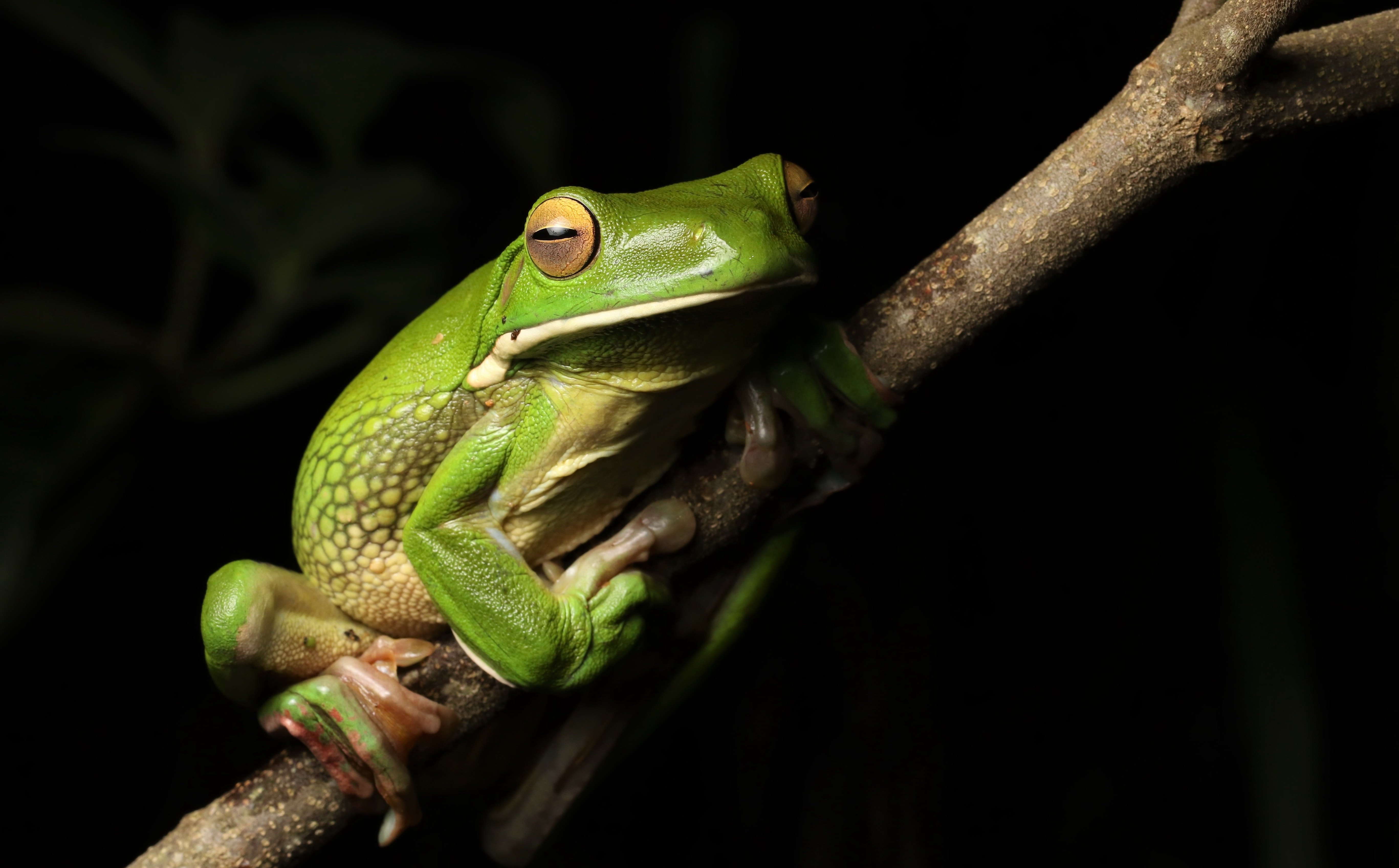 Wallpaper Big green frog sitting on a branch