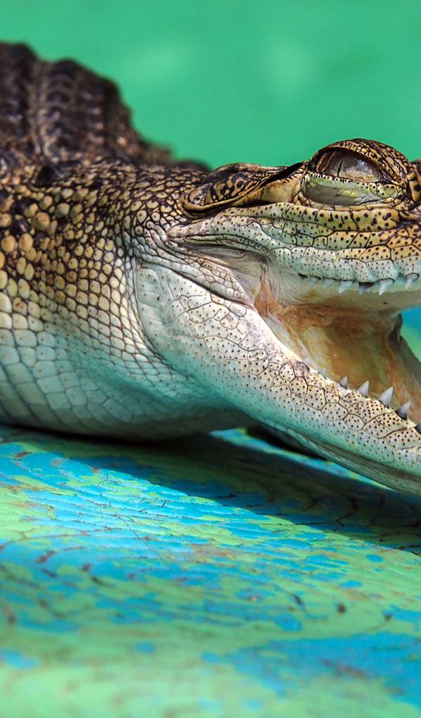 Wallpaper Open-jawed alligator with sharp teeth