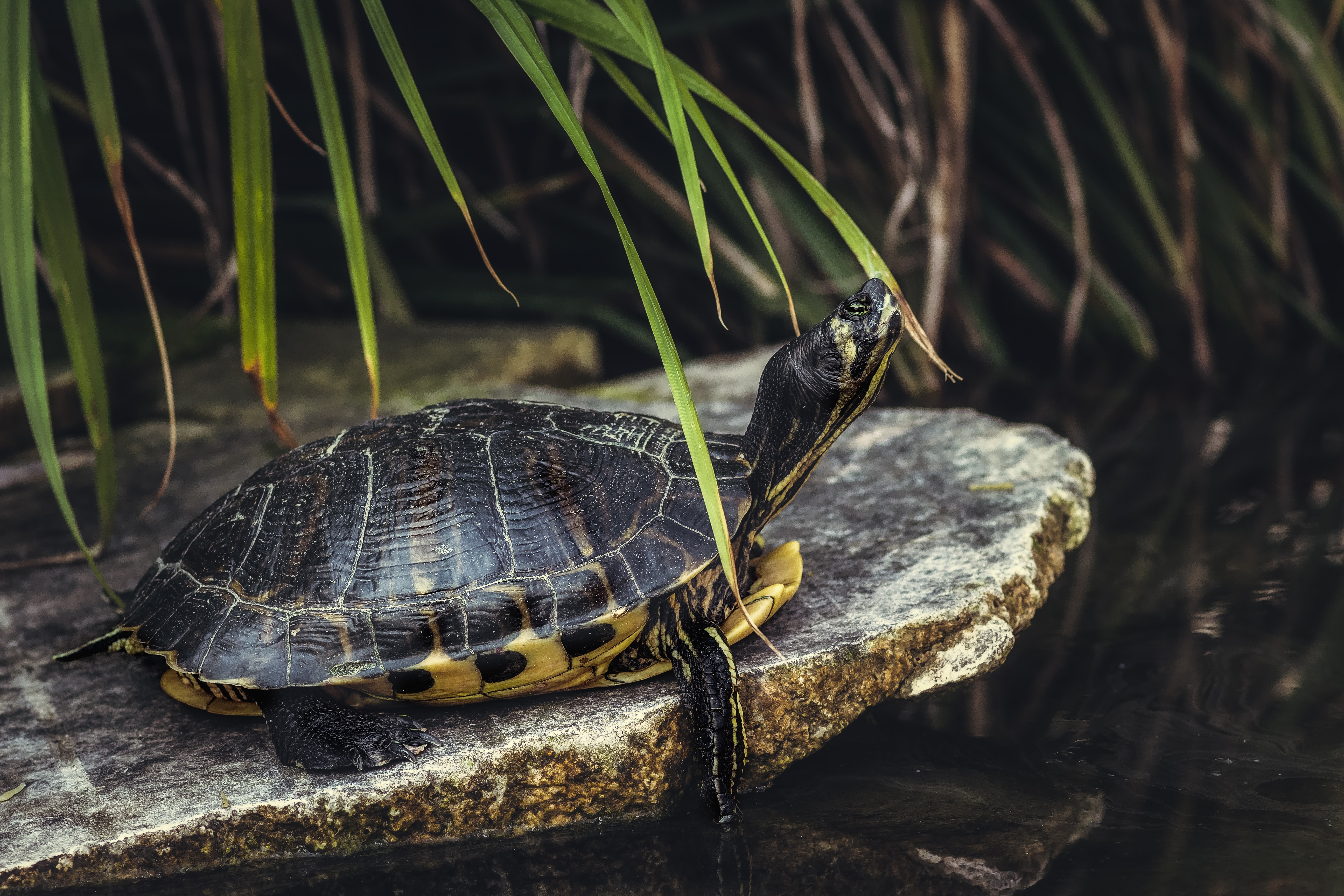 » Wallpaper Big turtle on a stone by the water