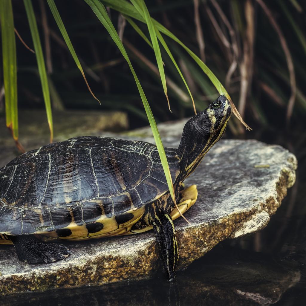 » Wallpaper Big turtle on a stone by the water