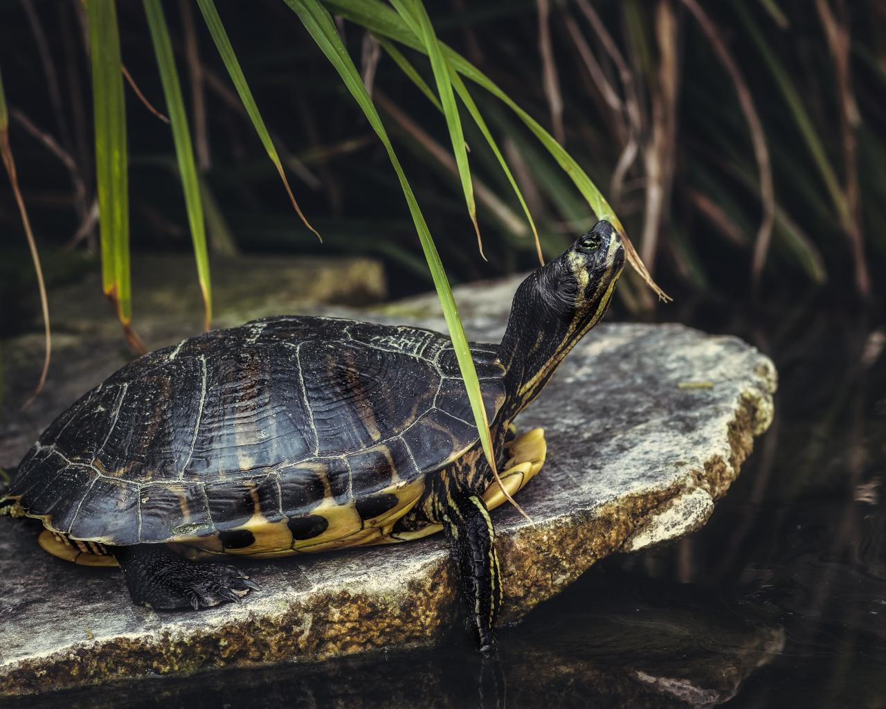 » Wallpaper Big turtle on a stone by the water