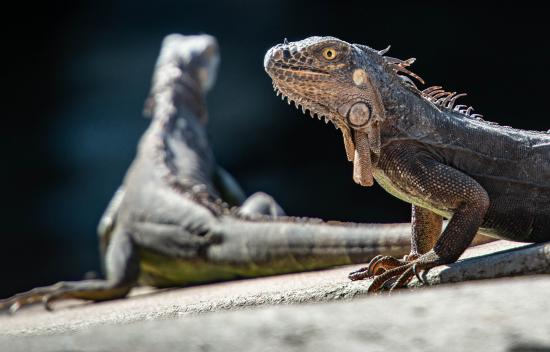 Wallpaper Two large iguanas basking on a stone