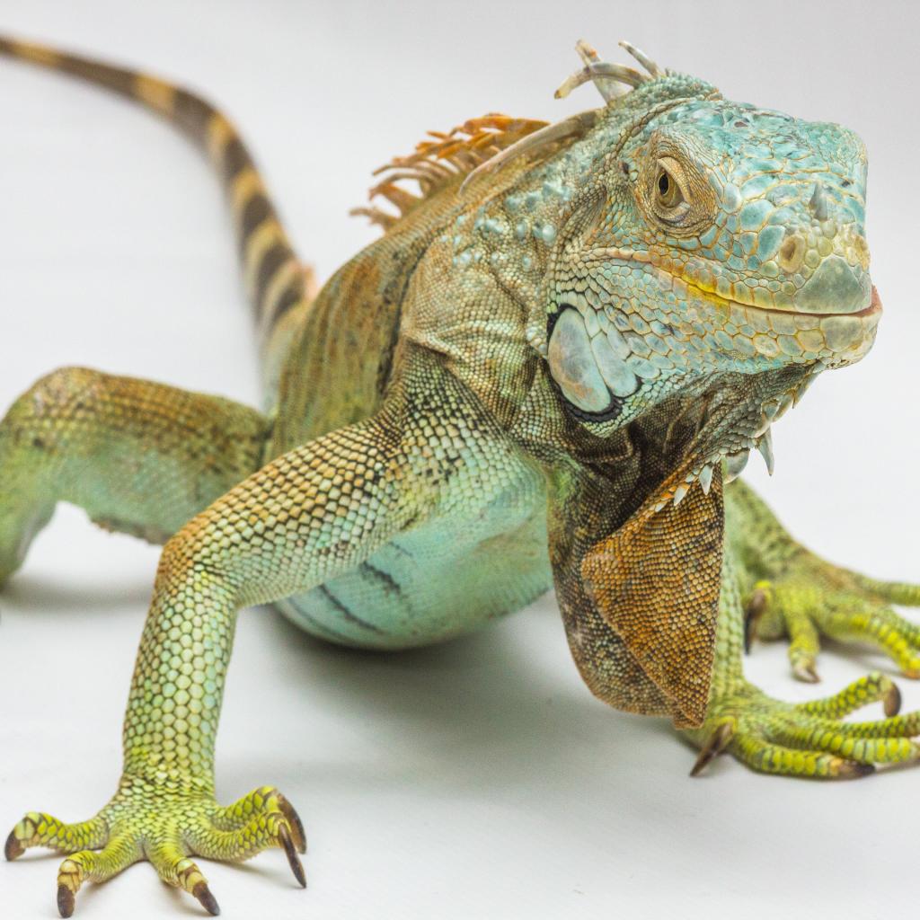 Wallpaper Large green iguana on gray background