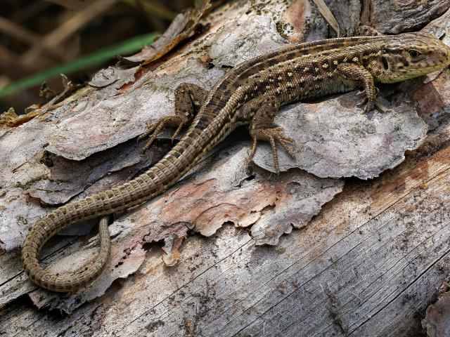 Wallpaper Large gray lizard sits on a dry tree
