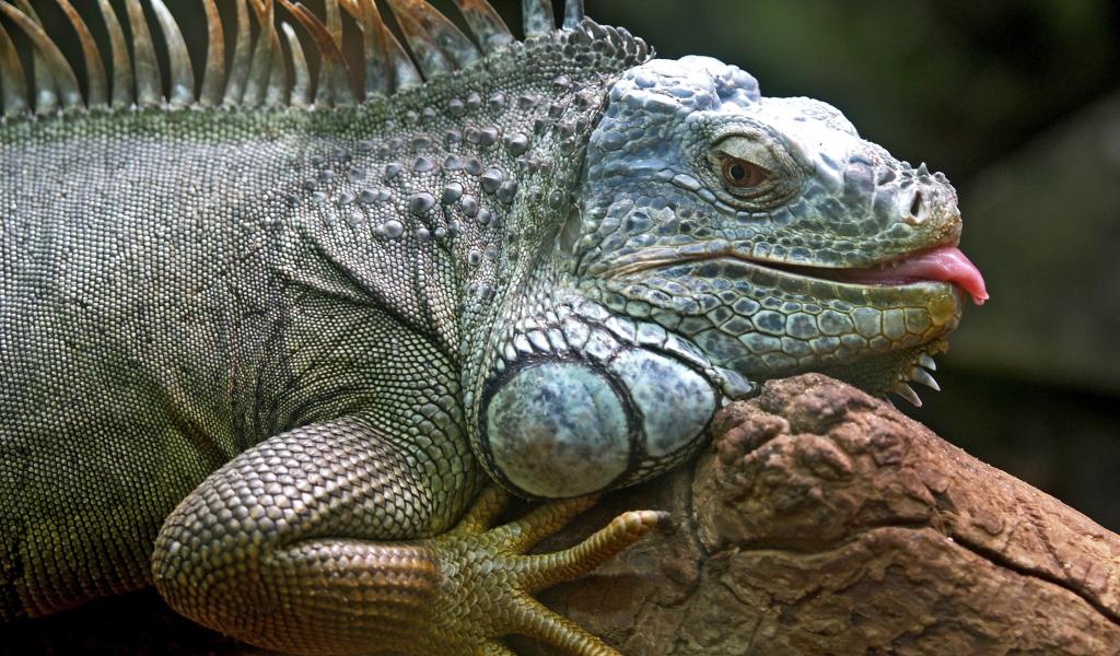 Wallpaper Large gray iguana with protruding tongue