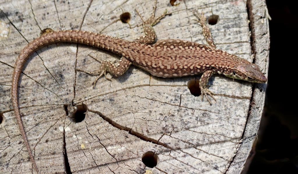 Wallpaper Beautiful lizard on an old tree stump