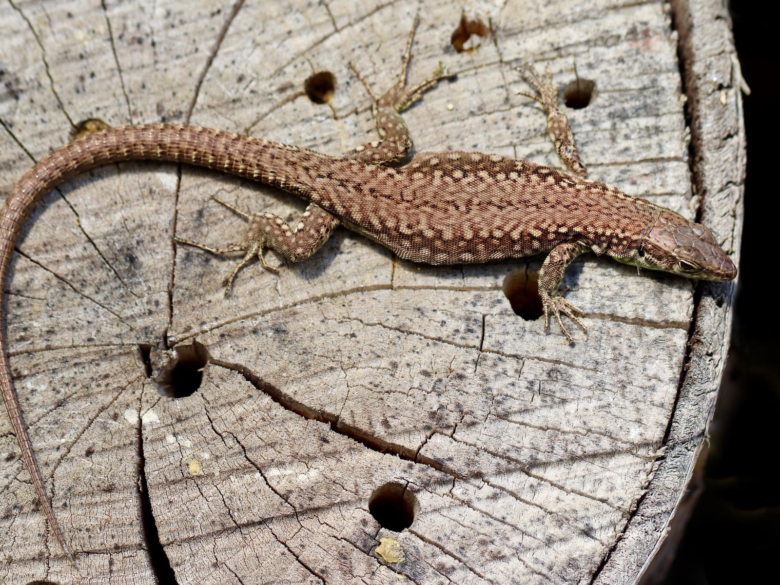 Wallpaper Beautiful lizard on an old tree stump